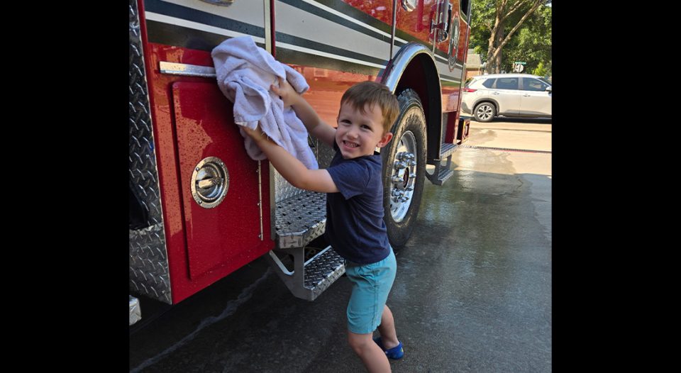 - Members of Kinsmen Lutheran, Houston, built relationships and washed fire trucks at the local fire station. Photo: Courtesy of Kinsmen
