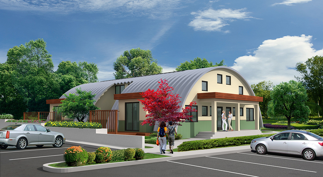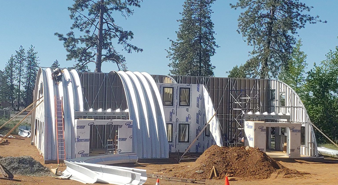Abbey Place is being built as a “Q Cabin,” a sustainable, disaster-resistant, all-steel construction with the arch of a Quonset hut, the prefabricated structure introduced during World War I. The Quonset hut isn’t fireproof, but it is fire-resistant, built to withstand intense heat.