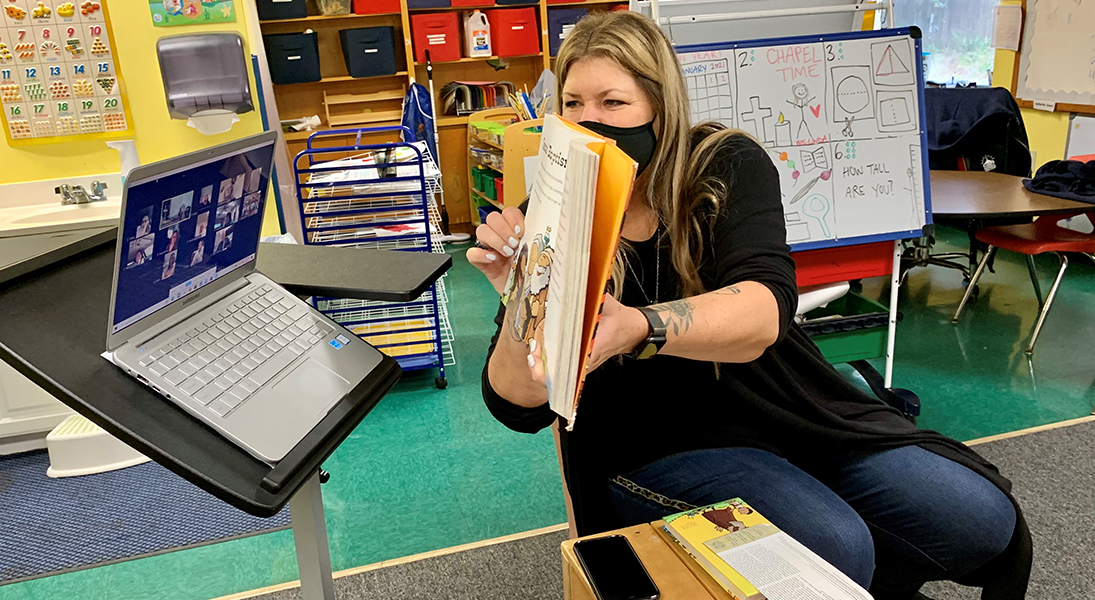 “My biggest triumph was my solution to this challenge—daily chapel time in the classrooms with families joining us via Zoom,” Chambers said. “This has opened chapel time to a much wider family audience, and I can tailor the Bible story lessons to the needs of each age group.”