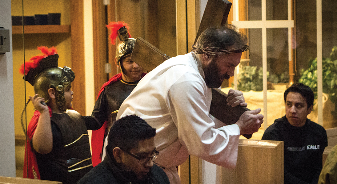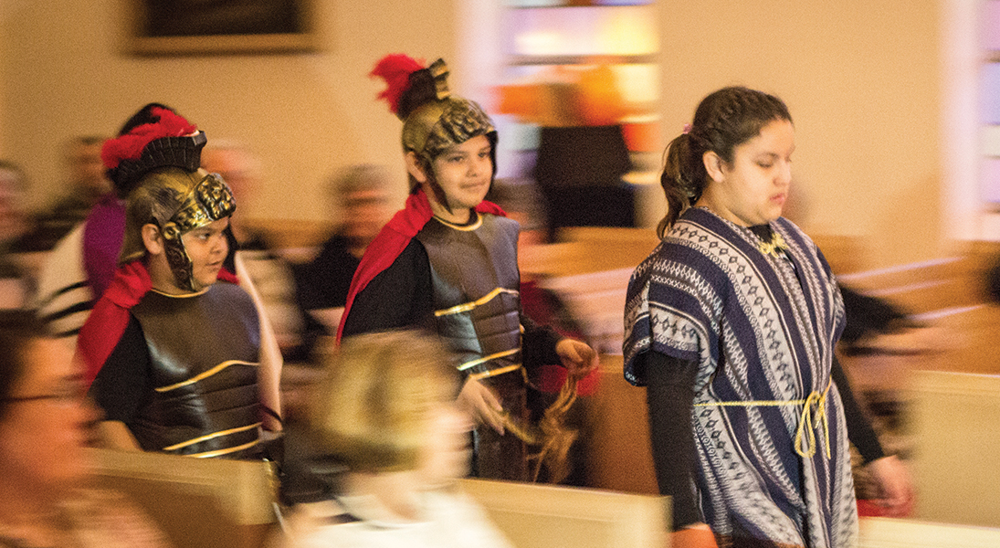 The production, which the congregation calls “The Prayer Walk of the Passion,” is pantomimed while Smith serves as narrator and another person translates the story into Spanish. Chris Lamberton, an adult member of the congregation, plays Jesus every year, with the children acting out the roles of disciples, soldiers, Peter, Judas, Pontius Pilate and others. The children audition for roles and are instructed on how to act out and convey the emotion of the story.