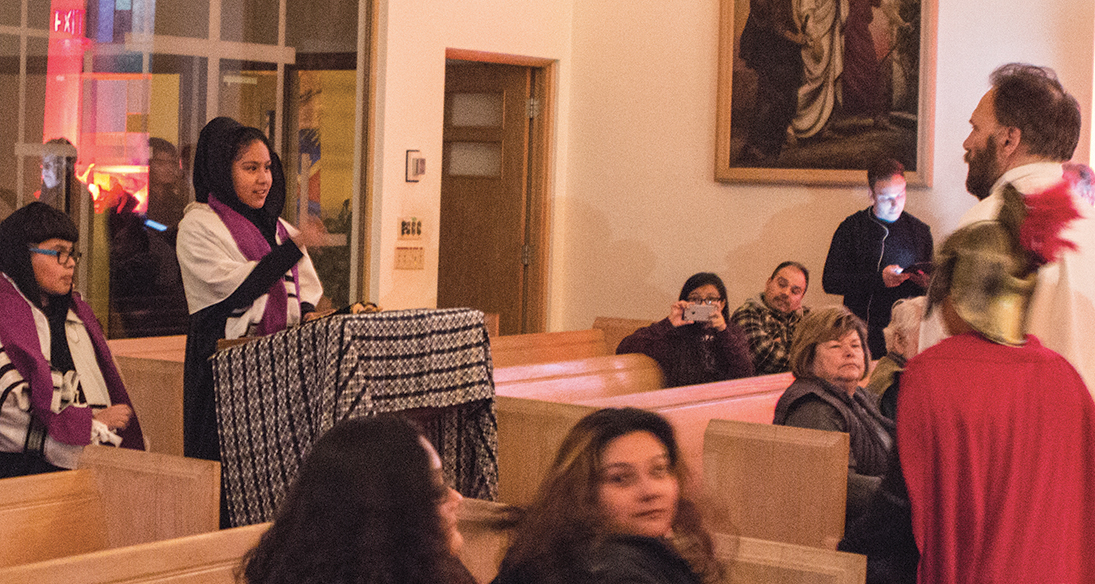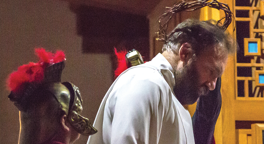 Smith wrote a script depicting Holy Week that has the actors and audience moving throughout the entire church building. The production begins outside with Jesus’ entrance into Jerusalem—complete with a live donkey—and ends with his crucifixion as the actors and audience move to a dark, candlelit room in the basement that’s been made to look like a tomb.