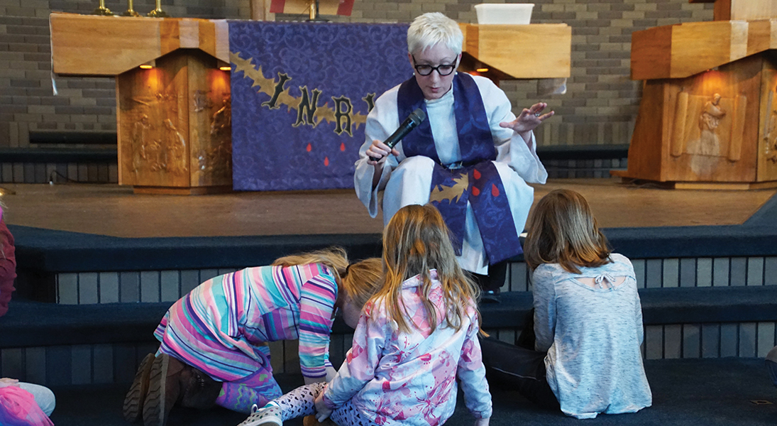 Instead of wrestling with their parents in the back pews during worship, toddlers at Grace Lutheran Church, Apple Valley, Minn., sit up front in the sanctuary. They’re stationed a few feet from the pulpit in their own space, the Pray-Ground.