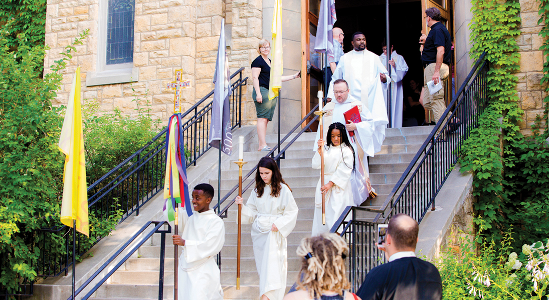 Hundreds of mourners leave silently from the chapel at Luther Seminary, St. Paul, and begin a long, slow walk to the place where Philando Castile was killed. The sound of hundreds of footfalls accompanies the silence, broken from time to time by song—“We shall overcome some day ….”