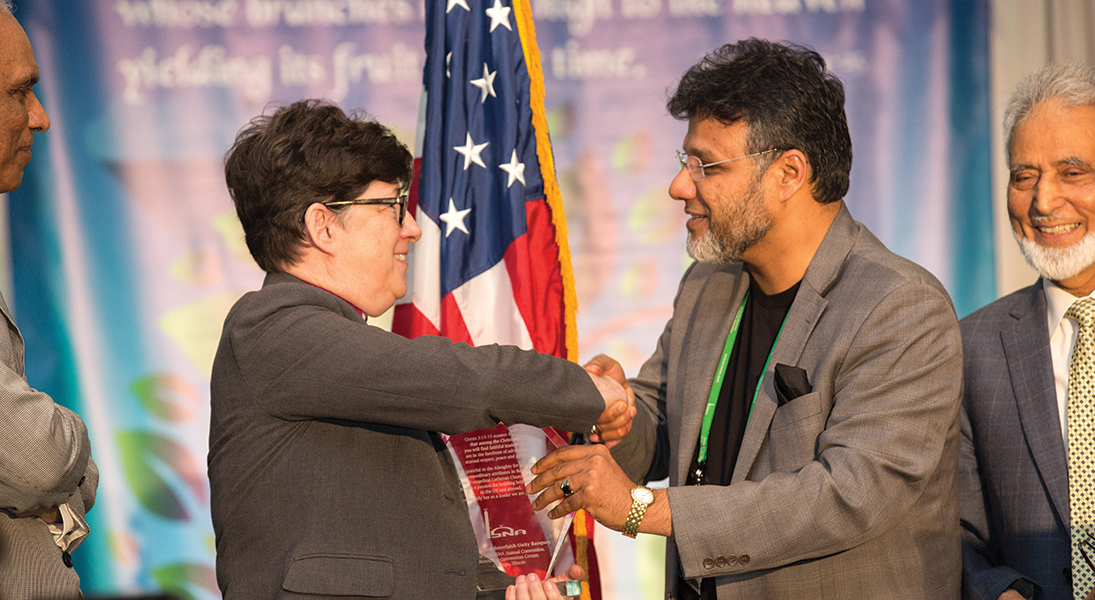 On July 2, Presiding Bishop Elizabeth Eaton was presented with the Islamic Society of North America (ISNA) Excellence in Interfaith Award at the organization’s 54th convention in Rosemont, Ill. ISNA is the largest umbrella organization of American Muslims, representing more than 2,500 mosques and community centers throughout the U.S. “We need to have these personal relationships because only when we can see each other truly as people … we can begin to stand shoulder to shoulder together,” Eaton said in her acceptance remarks.