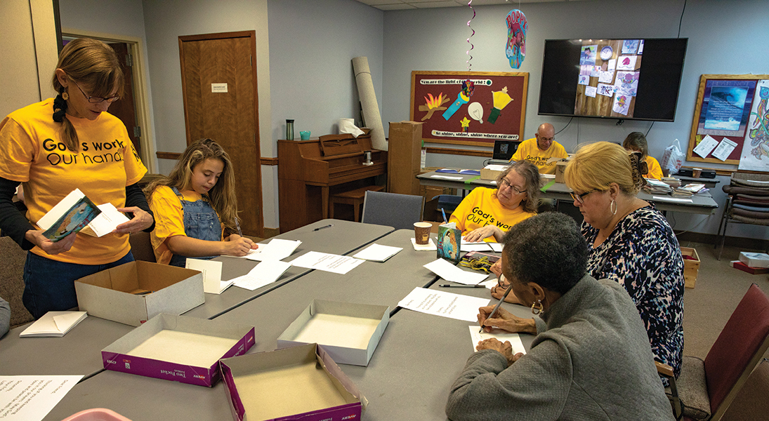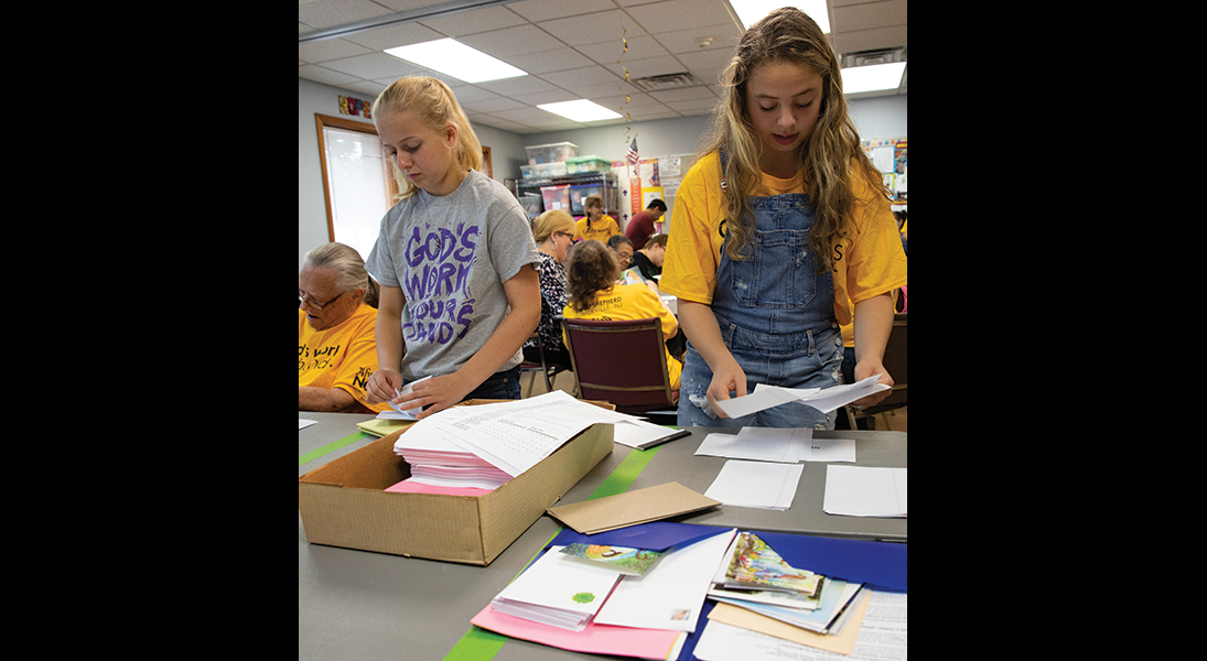 They ordered the yellow T-shirts and Gravelle made flyers that listed information about West Union and invited people to some upcoming events. On their service day, West Union’s members filled goody bags with candy and homemade cookies and delivered them with the flyers to different places in town—the nursing home, the police station and to people from church they hadn’t seen in a while.