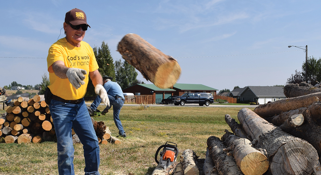 Faith Lutheran Church in Lander, Wyo., started participating in “God’s work. Our hands.” Sunday in 2013 with a variety of service projects around town. Three years ago, they added an activity to their service day when members Hart and Josey Jacobsen had to cut down a lot of trees on their property that had been killed by the pine bark beetle.