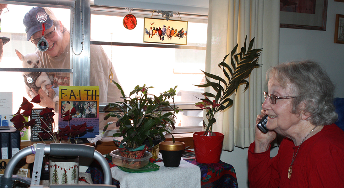 As news of the pandemic continued, residents began to worry less about their own health and more about their loved ones, Erickson said. The facility ordered computers and mobile pedestals so residents could enjoy video calls with friends and family, and “window visits” enabled them to meet with loved ones, separated by glass but talking on phones.