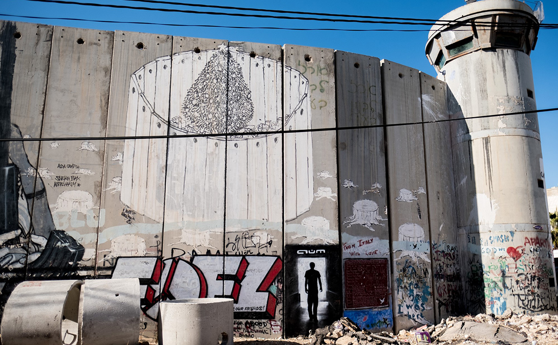 - In front of the separation wall while smiling (then, with our U.S. passport privileges, we’d travel back to Jerusalem without a hassle).